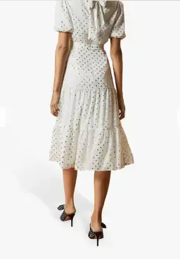 Ted Baker Mariani Spot MIDI Dress Ivory In Size 2/AU 10