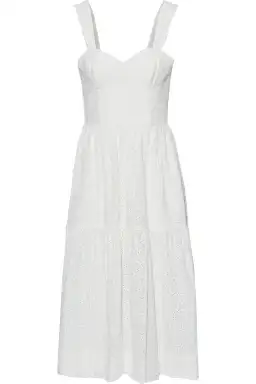 Rebecca Vallance Valentina Broderie Anglaise Cotton Midi Dress Ivory Size AU 6