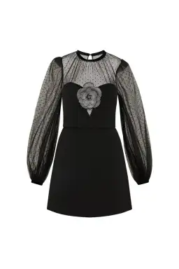Cut to sit snug at the bodice before falling to its A-line skirt. Beautifully crafted from a combination of bonded crepe and a tulle mesh fabrication, it is designed with side seam pockets and diamante flower at the centre front to elevate the already chic silhouette.