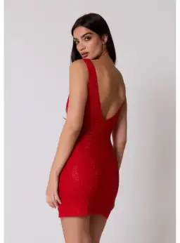 As per SLA The Label website - OUR HERO GIGI DRESS IS CRAFTED FROM A DOUBLED LAYERED MESH FABRIC AND EMBELLISHED WITH RHINESTONES. FEATURES A PLUNGE NECKLINE AND A SECOND SKIN FIT WITH A SEMI SHEER FINISH.