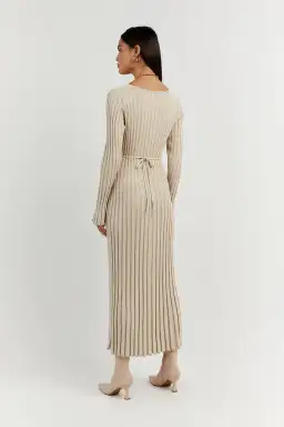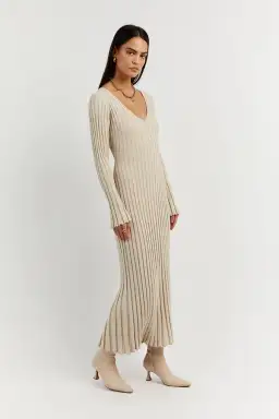 Dissh Reign Stone Sleeved Knit Midi Dress Stone Size XS/AU 6