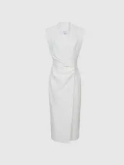 Reiss Cecile Tuxedo Midi Dress White Size AU 8