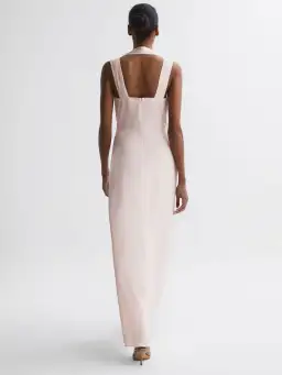 Reiss Lila Bridesmaid Twist Detail Midi Dress Nude Size XS / AU 6
