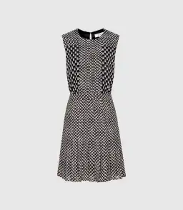Printed with the season's black and cream geo print and cut with a pleated hem, the Nancy dress is a contemporary way to make a style statement. Wear it with a blazer and heeled sandals for a refined workwear look.