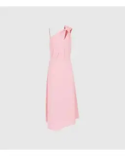 Reiss One Shoulder Delilah MIDI Dress Pink Size L / AU 12