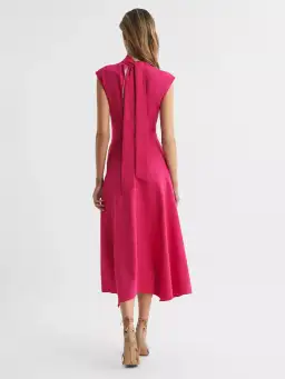 TAKE CENTRE STAGE THIS SEASON IN THE BRIGHT PINK LIVVY MIDI DRESS. THIS HIGH-NECK STYLE FEATURES A STRIKING OPEN-BACK DETAIL THAT FASTENS WITH A SELF-TIE BOW. STYLE THIS ELEGANT NUMBER WITH DELICATE JEWELLERY AND HEELED SANDALS FOR EVENING EVENTS.