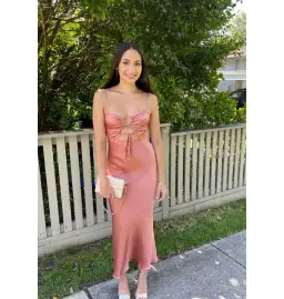 Shona Joy Eloise Lace Up Midi Dress Antique Rose Size AU 6