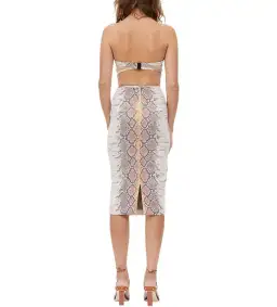 Embodying the label's modern approach to tailoring, the Reptillia Dress sports a playful snakeskin print that will instantly turn heads. Crafted from premium Italian jacquard fabric, it fits snug to the frame and falls just below the knees. The strapless design is held firm with grip elastic along the inside neckline and a clean invisible zipper at the back. Team yours with nude heels and a sprinkle of gold accessories.