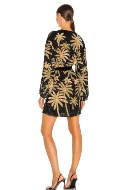 Retrofete Gabrielle Robe Dress in Blac/Gold Palm Size 6