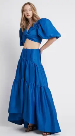 Aje Reverb Puff Sleeve Cropped Top and Midi Skirt Set Size 14