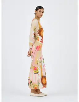 The Bazaar Dress, adorned in our bespoke Pink City print. Featuring long sleeves and a centre back split, the ease of wear emerges from the ultra soft ecovero jersey fabrication.