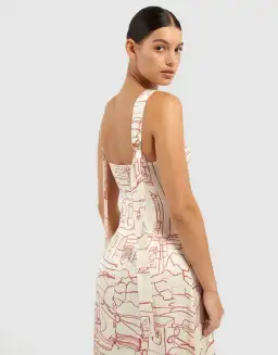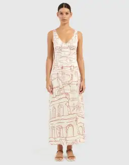 Falling to a floaty maxi skirt, this dress exudes sophisticated elegance with a touch of luxury—allowing you to escape with style.