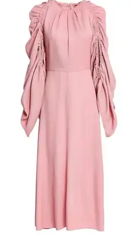 Roksanda Silk Midi Dress With Ruched Sleeves Pastel Pink Size AU 8