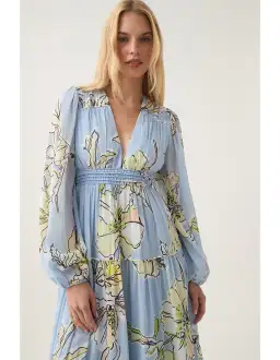 Aje Romantica Voile Maxi Dress Blue Hibiscus Size S / AU 8