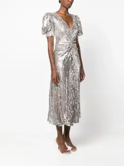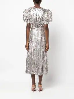 Rotate Puff Sleeve Sequin Midi Dress Silver
