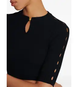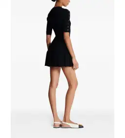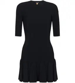 Balmain Round Neck Pleated Ribbed-Knit Skater Mini Dress Black Size AU 10