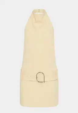 The Sabina Belted Mini Dress in Butter is an event ready silhouette, crafted from lightweight summer suiting fabrication with a smooth handfeel. It features a softly draped halter neckline, an open back and a removable wide belt at the waist for an adjustable fit.