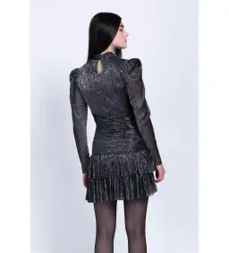 If the Angela Dress in Black by SABINA MUSAYEV could talk, it would whisper mysterious, magnetic, unforgettable. This is your after-dark go-to for big entrances and effortless exits—crafted with a ruched metallic body, bold shoulder line and a flirty tiered mini hem that delivers movement and mood in every step. Available new with tags, this piece can be rented for the moment or purchased forever.