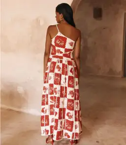 Sabo Skirt Exclusive Pear Blossom print on a high quality linen fabric and feminine silhouette make for the perfect look for an event. The Kyoho Dress features ric rac trims, panel and strap details and a flared maxi skirt. Exclusive ZĀCO design.