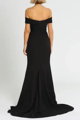 The Gia Lace Bodice Gown by Samantha Rose is a showstopper with its alluring lace accents and thigh-high split, guaranteed to catch everyone's attention. This off-the-shoulder gown features a sweetheart neckline and a floor-length skirt with a graceful train. Its elegant and feminine design makes it the perfect choice for renting, whether you're attending a wedding or a black-tie event. The gown has a zip fastening, a fitted mermaid silhouette, and exquisite lace detailing on the bodice.