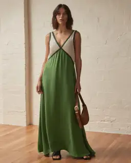 Naomi dress is the perfect choice for summer weddings and garden parties. This elegant, floaty style has contrast colours and panel lines that create a flattering, relaxed silhouette. Featuring a fluid skirt and v-neckline, style yours with heels or flats.