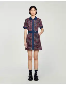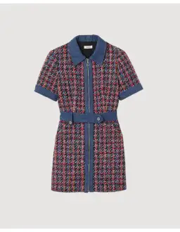 Sandro Denim Tweed Mini Dress Multi Size 12 AU