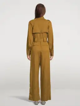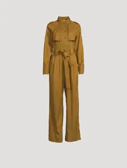 Long sleeve high neck boiler suit with waist tie in a TENCEL™ blend.
