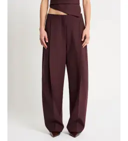 Richly toned in merlot, these pants flow effortlessly through a virgin wool stretch blend, revealing relaxed tailored shaping within a slightly tapered fit that extends to full length. Accentuating their fluid fit with deep pleats at the front of the waist, the pants retain lines clean elsewhere with a concealed front fastening framed by discreet hip pockets and welt pockets to the rear.