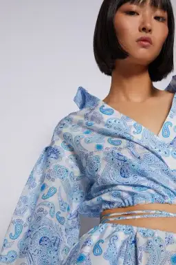 Scanlan Theodore Aztec Paisley Crop Shirt and Skirt Set in Pale Blue