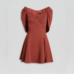 Crafted in a rich sepia colorway the mini dress showcases a wrap front and a zip up front. Drawing inspiration from sophisticated femininity and foundational sensibility, the dress is designed to be paired sleek accessories and complimentary hues.