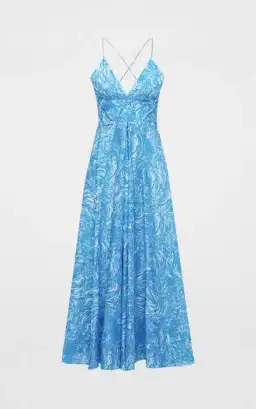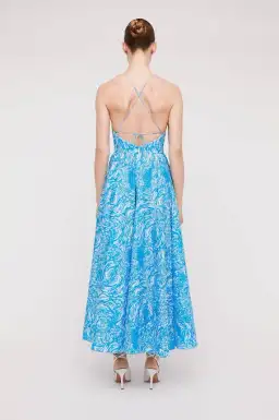 Scanlan Theodore Cotton Ocean Dress with Shoestring Crossover Straps Blue