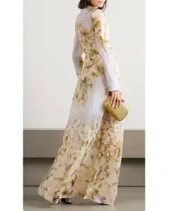 The Luminosity Bias Slip Dress in Ivory Garden Floral from our Fall 2023 Collection, Luminosity. A full length, bias cut dress with placement print throughout.