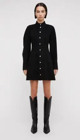 Scanlan Theodore Denim Cocoon Sleeve Mini Dress Black Size 6