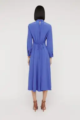 Scanlan Theodore Silk Gather Neck Dress Blue Size 8