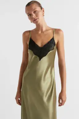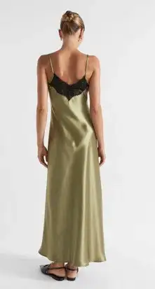 SEED Satin Lace Trim Slip Dress pistachio size 4