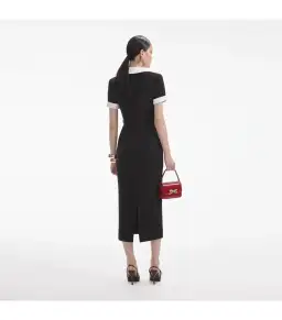 Self Portrait Crepe Contrast Midi Dress Black Size S / AU 8