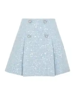 Street-ready sparkle give an iconic preppy piece a fresh update in this skirt, which is tailored to perfection for the ultimate leg-lengthening fit. Cut from blue sequinned bouclé for its polished structure, its flattering high waistline is accented with diamanté buttons before falling to a playful pleated mini. Keep it coordinated with the matching jacket, or mix it up with cropped knits and leather boots for weekend brunch.