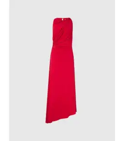 Flattering silhouettes and timeless design - introducing our Emporium Midi Dress, a wardrobe must have. Featuring a red stretch jersey fabrication, fit and flare styling, asymmetrical neckline with twist detail, ruching at bodice and skirt, asymmetrical hemline and midi skirt length. Style with our Elisa Earrings to complete the look.