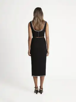 Elevated tailoring for the modern woman. Our Emporium Skirt epitomizes sophistication with an unexpected edge - featuring textured stretch fabric, crystal roping trim and thigh slit. Pair with our Emporium Top and Berkley Earrings for an unstoppable look.
