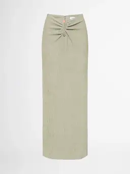 Introducing the Haven Skirt - showcasing inspired metal trim detailing, fixed waist with slight stretch and A-line maxi length skirt.