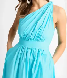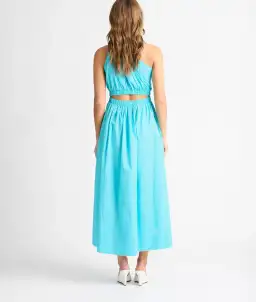 a statement! Isla Maxi Dress! Showcasing a fitted bodice with knot detailing on shoulder, half elasticated back and side insert pockets.