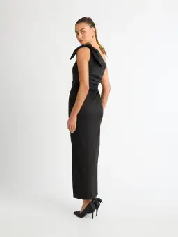 Make a lasting impression. Introducing the Kennedy Dress - showcasing a fitted cut, one shoulder strap with self tying knot and side seam split.