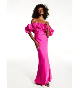 Featuring a fitted bodice with a contrast off shoulder neckline and side waist cut out, this beauteous maxi is a statement piece that will adorn your wardrobe for years to come.