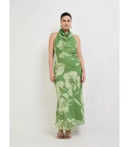 When modern florals meet painterly abstraction. Introducing the Mia Maxi Dress - featuring a floral chiffon printed fabrication, fitted styling, high halter cowl neckline with scoop back, rouching detail at waist and maxi length skirt. Pair it with our Outline Earrings to complete your look.