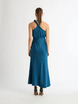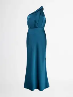 Decidedly Romantic - Introducing the Naomi Maxi Dress, showcasing a slim fit cut, fixed waist and a one shoulder self fabric padded strap. Size 16
