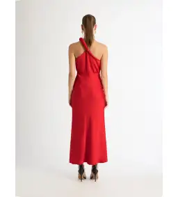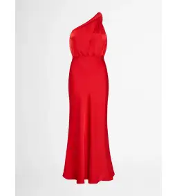 Decidedly Romantic - Introducing the Naomi Maxi Dress, showcasing a slim fit cut, fixed waist and a one shoulder self fabric padded strap. Size 12