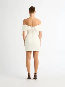 Instilled with elements of exaggerated silhouettes and structured shapes, the Nour Mini Dress is a power piece designed to stand the test of time. Showcasing a white woven fabrication, fitted styling, off the shoulder straps with pleating at the bust, side seam pockets and a mini skirt length this little white dress is destined for every wardrobe.