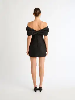 Instilled with elements of exaggerated silhouettes and structured shapes, the Nour Mini Dress is a power piece designed to stand the test of time. Showcasing fitted styling, off the shoulder straps with pleating at the bust, side seam pockets and a mini skirt length this little black dress is destined for every wardrobe.