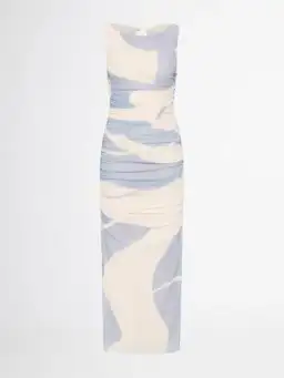 Bask in effortless style in the Ocean Breeze Mesh Dress, designed for sunny days and laid-back vibes. Featuring a printed stretch mesh fabrication, slim fit, midi length skirt, high neckline, open back and gathering across the body.