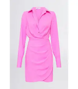 Sheike’s Malibu Mini Dress features a mock wrap mini skirt with gathering on hip and an invisible zipper side waist closure.